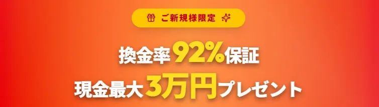 | 換金率 | 初回は最低92%を保証 |