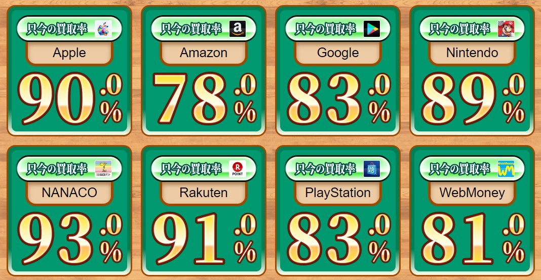 ギフト券の買取率は70%~90%さらに手数料5~10%が主流です。