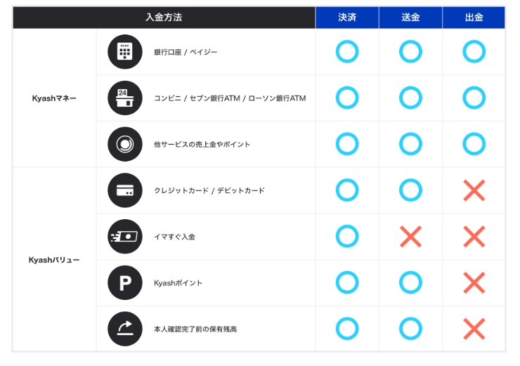 Kyash(キャッシュ)ではクレジットカードやデビットカード、イマすぐ入金でチャージしたお金は引き出すことはできません。