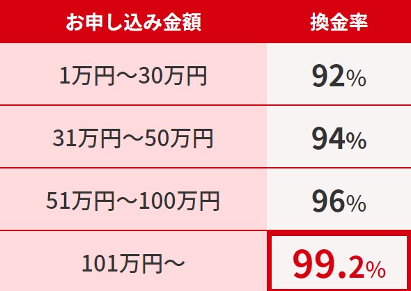 | 換金率 | 最低83%以上 |