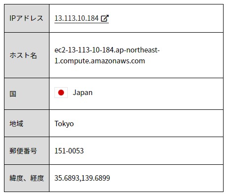 東京都渋谷区代々木にあるAWS(Amazonサーバー)の所在地が表示されました。